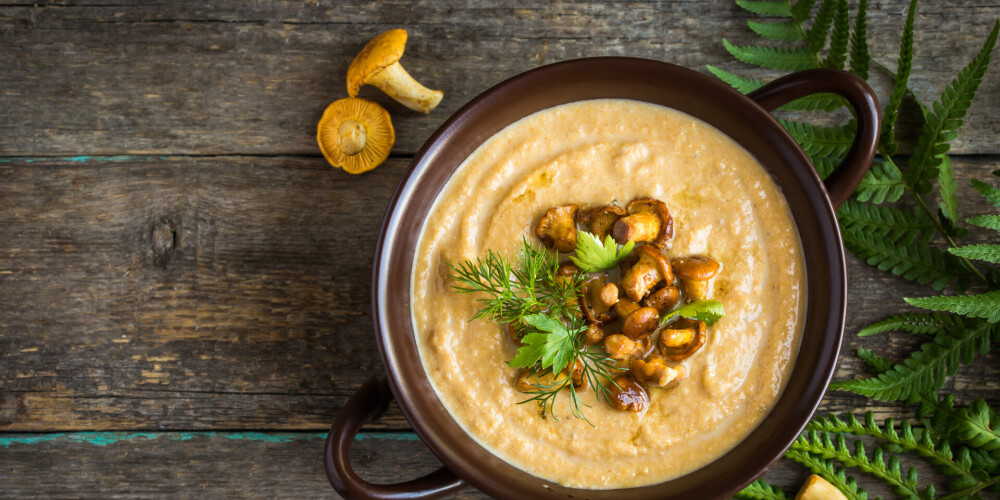 Pielej buljonu un uzvāri. Pievieno krēmsieru, maisot izkausē. Pieber sāli un piparus un sablendē.
