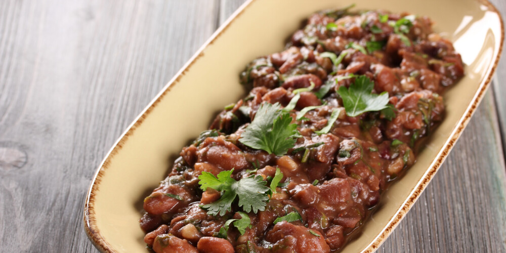 Vārītās pupiņas pavisam viegli saspaidi un kopā ar ķiplokiem un koriandru iemaisi dārzeņos. Pasautē vēl 3–4 minūtes.