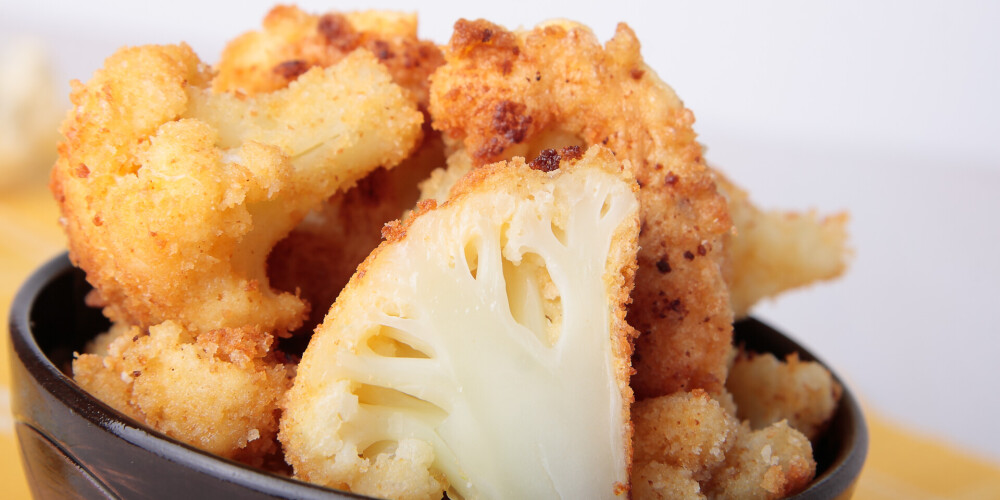 Ziedkāposta šķēles apviļā miltos, pēc tam olās, beigās – rīvmaizē.