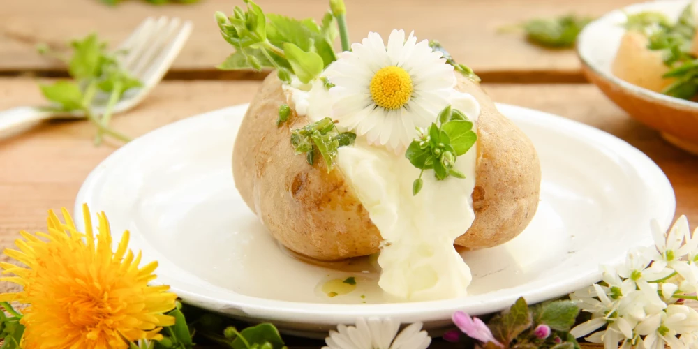 Smalki sakapā sīpolu un samaisi ar skābo un saldo krējumu. Pievieno smalki sagrieztus ziedus, sāli un piparus.