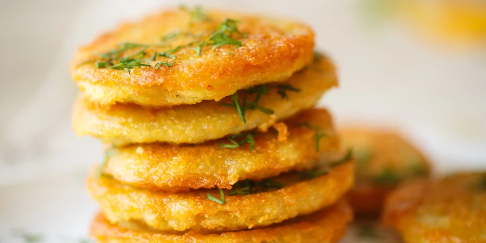 Svaigos kartupeļus nomizo un sarīvē uz smalkās rīves vai ar sulu spiedi. Liec sietā un bļodā notecini sulu. Pēc kāda laika sulu nolej un bļodas apakšā esošo cieti pievieno kartupeļu masai.