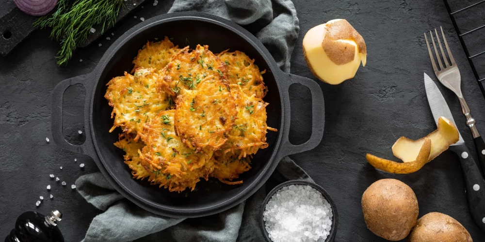 Kartupeļus nomizo un sarīvē uz smalkās dārzeņu rīves; ja ir sulu spiede, vari izmantot to. Liec masu sietā un notecini sulu bļodā. Kad sula mazliet pastāvējusi, to nolej, bet apakšā nogulsnējušos cieti pievieno kartupeļu masai.