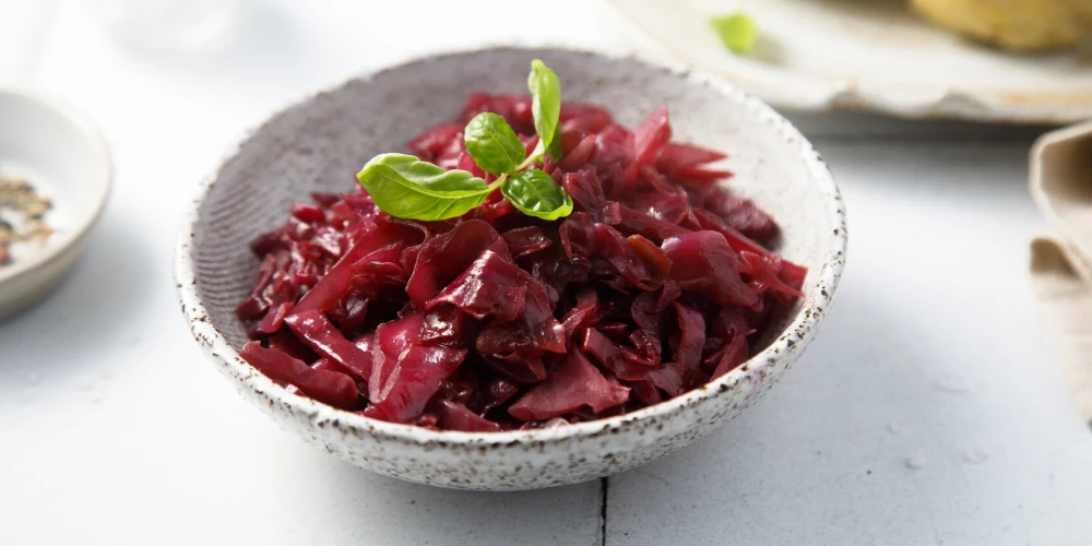 Kāpostu sagriez strēmelēs un sīpolus ripiņās. Katlā izkausē sviestu vai ielej eļļu un tajā 4–5 minūtes cep sīpolus. Pievieno cukuru, rozīnes un cep vēl 3 minūtes, līdz sīpoli sāk karamelizēties.