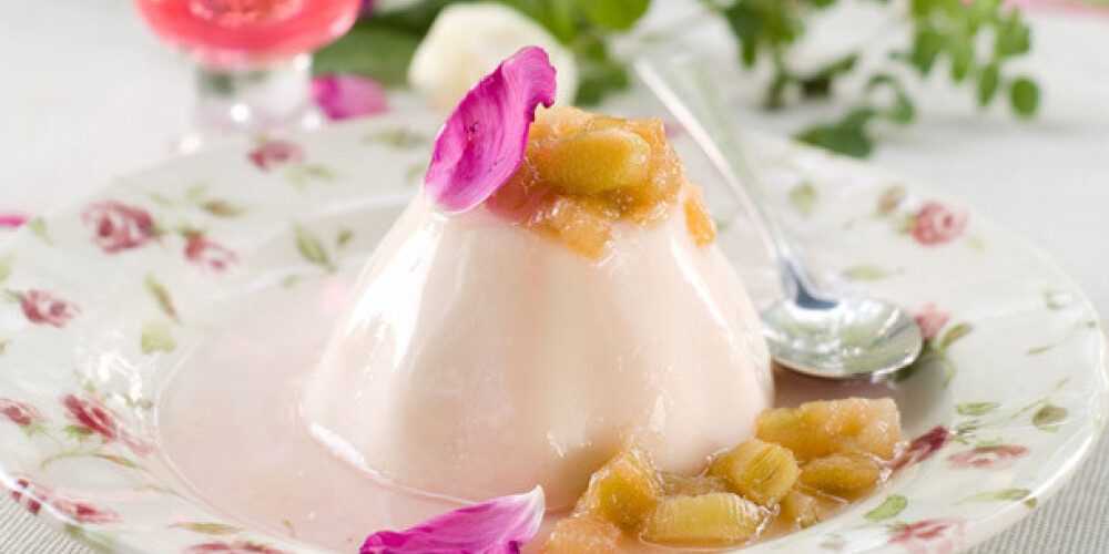 Panakotu izņem no ledusskapja. Ar plānu nazi novelk gar formiņas malām un iemērc formiņu ļoti karstā ūdenī uz 15-20 sek. - tad želeja viegli izslīdēs ārā. Formiņu apgāž otrādi uz šķīvja un noceļ formiņu. Pirms pasniegšanas panakotu pārlej ar rabarberu mērci.
