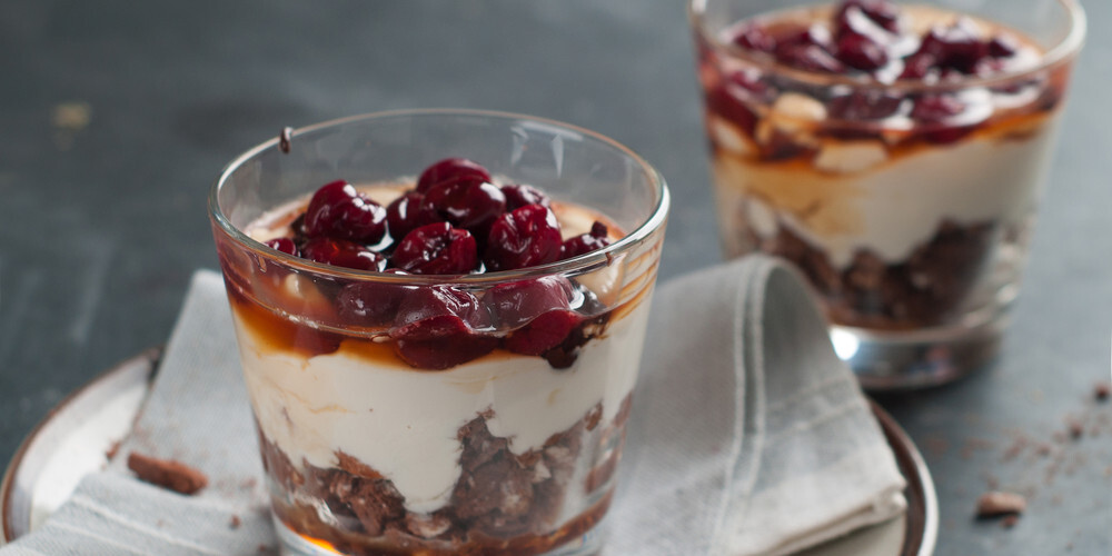 Porcijas glāzītēs kārto slāni ar drupinātiem cepumiem, tad slāni ar saldo krējumu. Pa virsu liek ķiršus un pārlej ar Amaretto liķieri. Līdz pasniegšanai uzglabā ledusskapī.