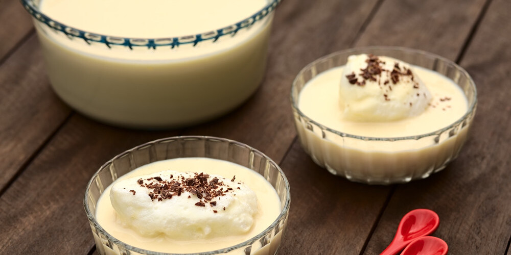 Mērci lej deserta trauciņos un ieliec peldošās salas.