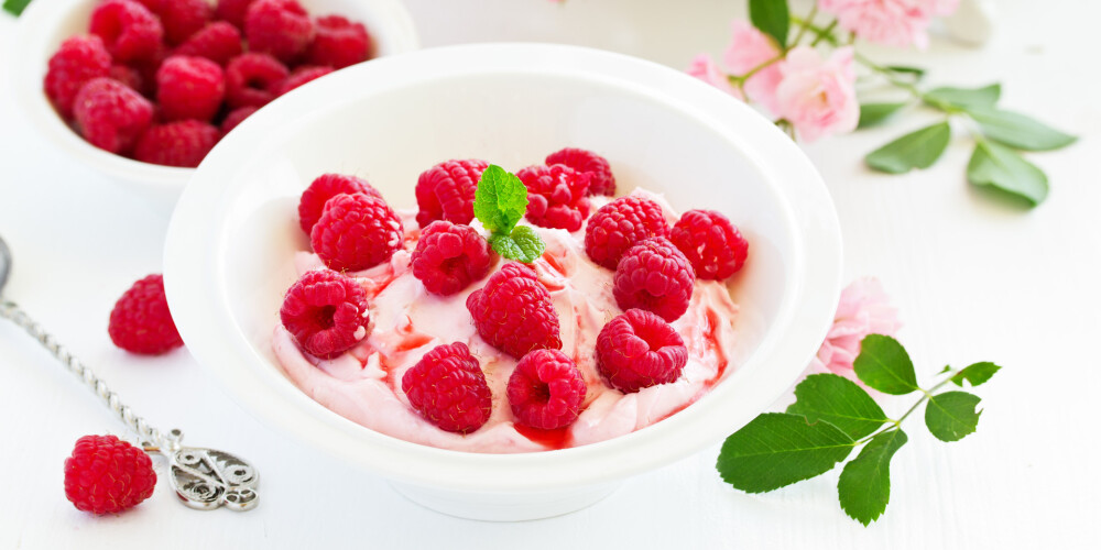 Pārlasītas avenes sadali divās porcijās. Ar dakšiņu saspaidi vienu porciju.