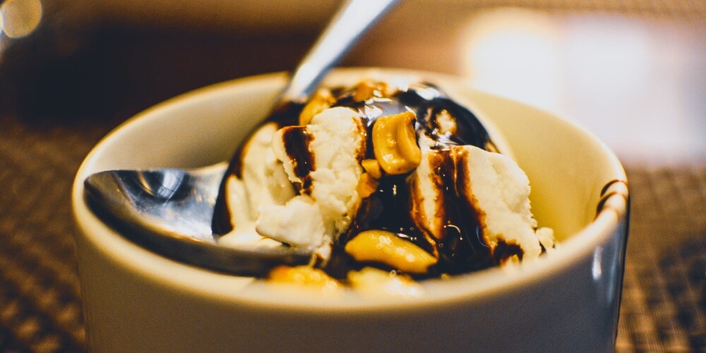 Visu pārlej plastikāta trauciņos un novieto saldētavā. Ik pēc 15-20 minūtēm masu apmaisa ar karoti. Pēc apmēram 3 stundām masa sastingst un to var jau kārtot saldējuma trauciņos.