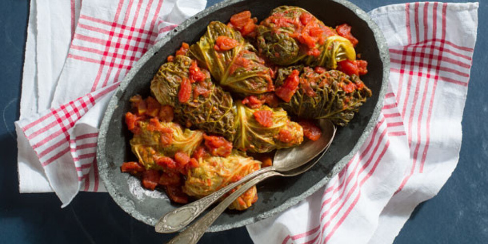 Kāpostu lapas novārīt sālsūdenī, apm. 15 min. ūdeni noliet, lapas atsdzesēt.