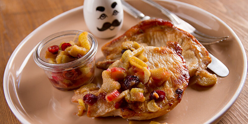 Pannā izkausē sviestu un uzcep gaļu līdz tā ir gatava. Gaļu pārkaisa ar sāli un svaigi maltiem pipariem un pasniedz ar rabarberu mērci.