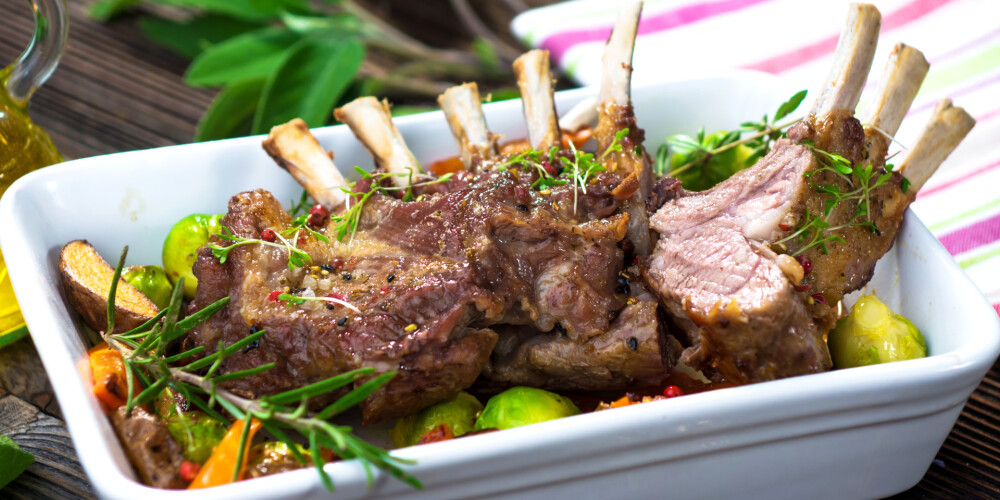 Dārzeņus nomizo un sagriez prāvos gabalos. Ķiploku sadali daiviņās, nomizo, pusi plāni sašķēlē, otru pusi – smalki sakapā. Jēra ribiņas noskalo, nosusini, ierīvē ar sāli un pipariem.