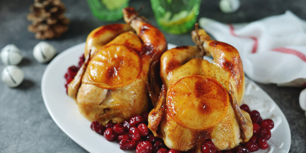 Cep cepeškrāsnī 15 minūtes. Tikmēr sarīvē viena apelsīna mizu un izspied sulu no abiem apelsīniem. Pārkaisi cāļus ar apelsīna miziņu un pārlej ar šeriju un apelsīnu sulu. Liec pannu atpakaļ cepeškrāsnī un cep vēl 20-25 minūtes.