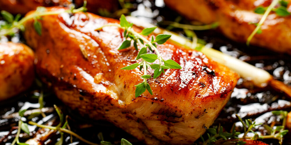 Vistu ierīvē ar citrona miziņām, aplej ar eļļas un medus maisījumu. Pārkaisa ar timiānu.