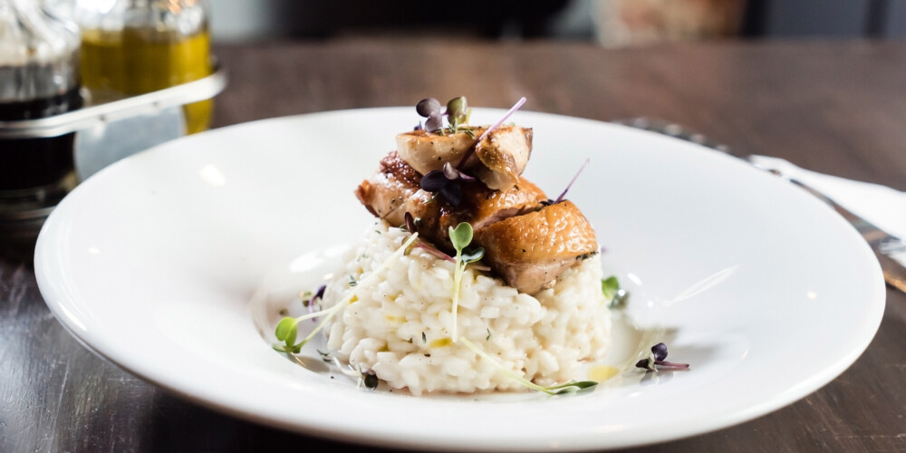 Pielej vīnu un vāri, līdz šķidrums gandrīz iztvaiko. Tad palielini uguni un pakāpeniski lej klāt buljonu – tiklīdz viena porcija ievārās, pielej nākamo.
