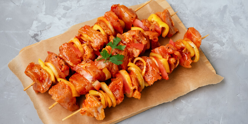 Šašliks tomātu un sīpolu marinādē