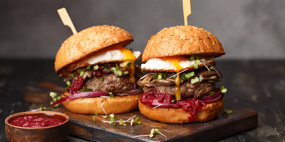 Pannā uzkarsē eļļu un liec tajā cepties atdzisušās burgera kotletes. Cep aptuveni 4–5 minūtes no katras puses, līdz gatavas.