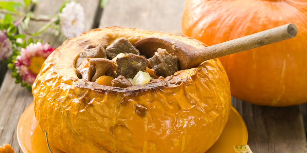 Sautējumu pasniedz ķirbja "podiņā".