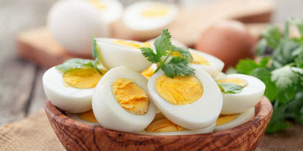 Nolobītas olas sagriez šķēlītēs, šķiņķi sagriez mazos gabaliņos. Nomizotus sīpolus sakapā.