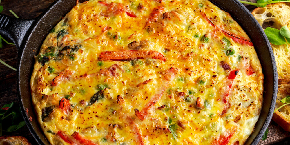 Bļodā sakul olas, pievieno 2 ēdk. ūdens. Pārlej olas kartupeļiem un cep uz mērenas uguns apmēram 8 minūtes, uzliekot vāku. Virskārtai jāpaliek brūnai.