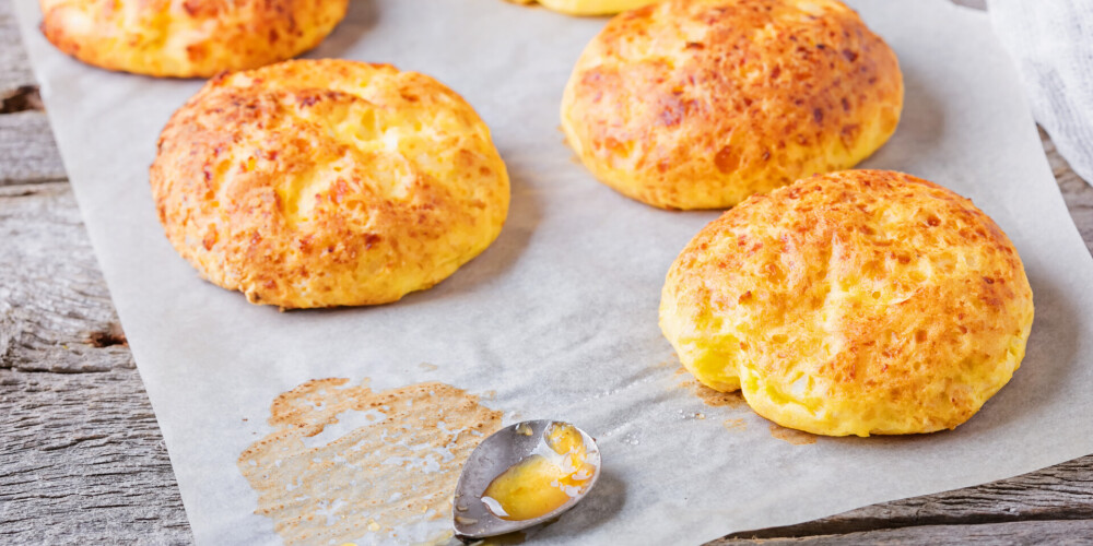 Dziļā bļodā lej kefīru, pievieno sodu, cukuru un sāli. Kārtīgi samaisi un atstāj uz 5 minūtēm ievilkties. Tad pievieno miltus, rupji rīvētu sieru un rūpīgi maisi līdz viendabīgai masai.