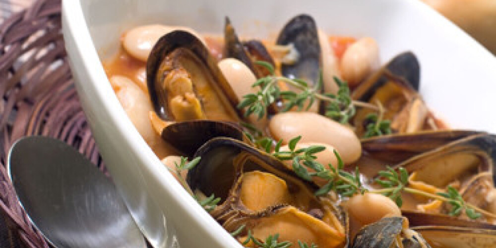 Zivju zupa ar gliemenēm un baltām pupiņām