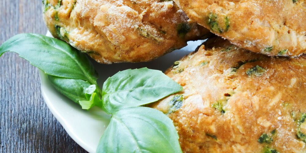 Riekstus sasmalcināt blenderī kopā ar bazilika lapiņām un ķiploku. Mīklu izrullēt, bet ne pārāk plāni. Riekstus ar zaļumiem vienmērīgi izklāt uz mīklas, pārkaisīt ar rīvētu Parmezānu. Mīklu sarullēt trubiņā un ar asu nazi sagriezt apm. 1 cm biezās šķēlēs.