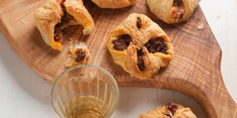 Sieru sarīvē uz dārzeņu rīves. Mīklu izrullē un sagriež kvadrātos. Katru mīklas kvadrātu apsmērē ar barbekjū mērci, uzliek šķipsniņu siera un malto gaļu. Kvadrāta stūrus paceļ uz augšu un sastirpinā (kā sainīti).