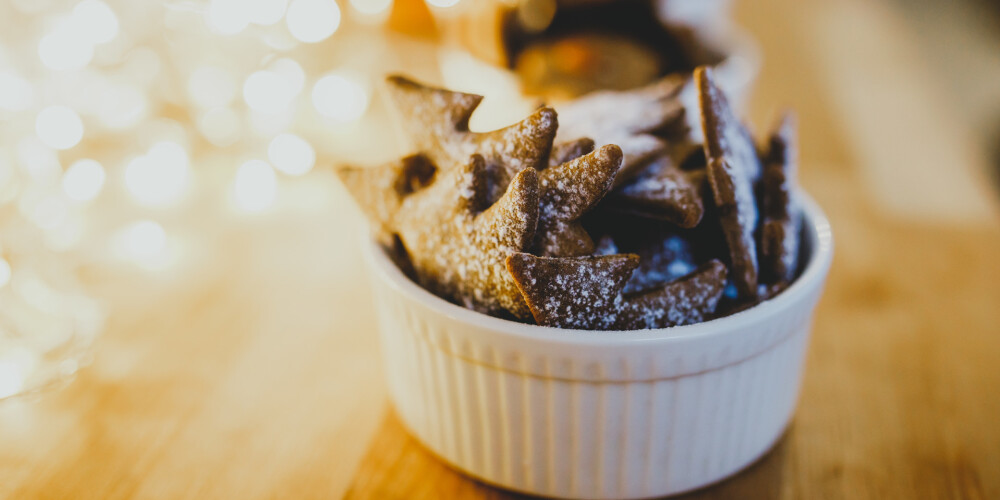 Mīklu izrullē 0,3 cm biezu, ar formiņām veido piparkūkas, tās izkārto uz cepamās plātnes. Gatavo 180°C sakarsētā cepeškrāsnī 8 minūtes.