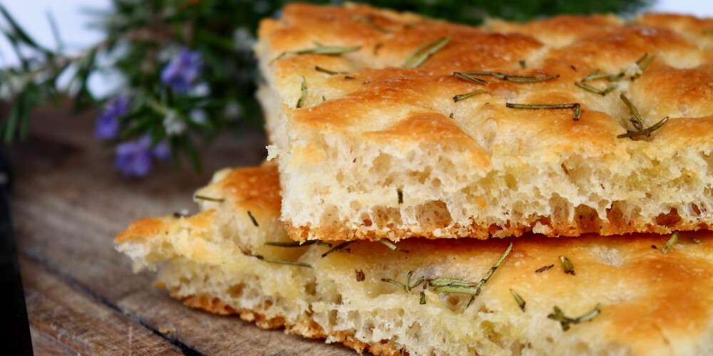 Mīklu pārkaisi ar jūras sāli un atlikušo rozmarīnu. Liec krāsnī 200 grādu temperatūrā un cep 25 minūtes. Pasniedz nedaudz atdzesētu.