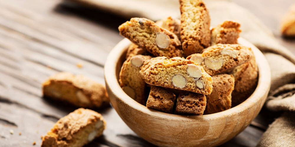 Izņem no krāsns un sagriez kā maizi aptuveni 1 cm biezās šķēlītēs. Tad cep otrreiz – aptuveni desmit minūtes. Atdzesē.