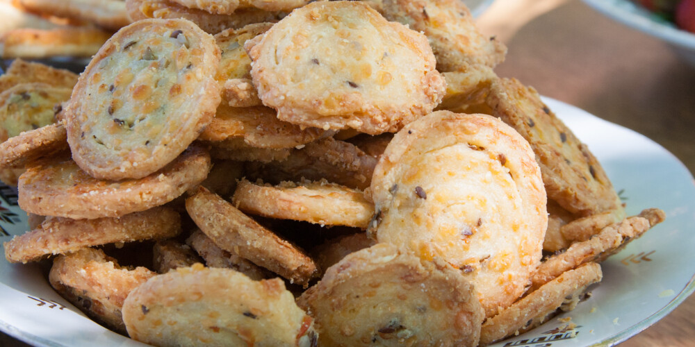 Sagriez pildīto mīklas rulli šķēlītēs, apzied ar olu un cep 190 grādu temperatūrā aptuveni 10 minūtes. Pirms cepšanas beigām cepumus izņem no krāsns un pārkaisi ar Parmas sieru.