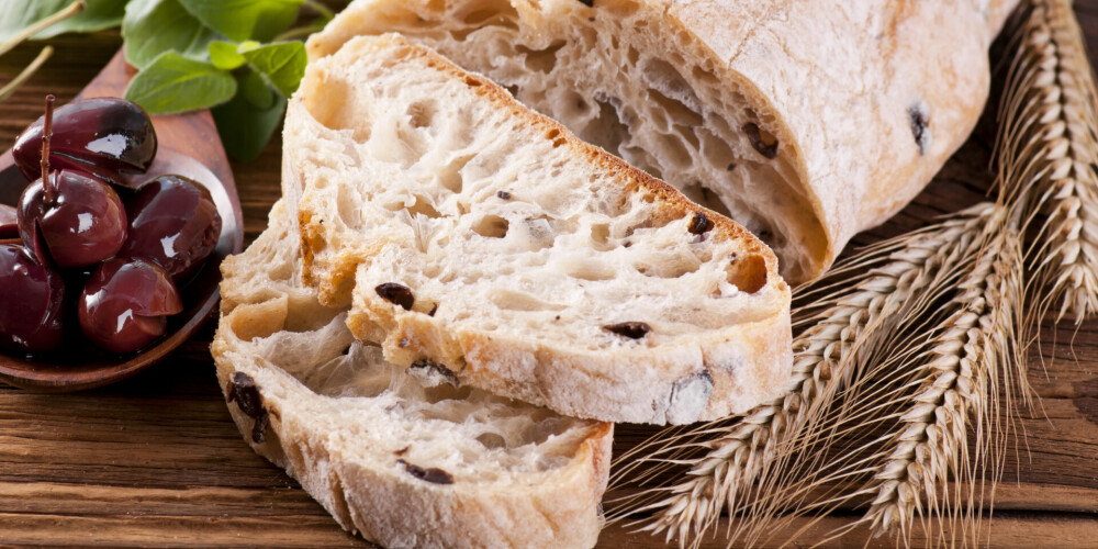 Nokaisi ar miltiem darba virsmu, liec uz tās mīklu un ar pirkstiem no tās izveido biezu plāceni, kam centrā liec olīvas. Mēģini ar pirkstiem olīvas iestrādāt mīklā, to no malas lokot uz viduci – rēķinies, ka olīvu gabaliņi mēģinās atbrīvoties no mīklas: tev mīcot, ir jāspēj tās noturēt. Ja šķiet, ka mīkla ir pārāk slapja, kādēļ neizdodas savaldīt olīvas, iestrādā tajā vēl nedaudz miltu. Saveido apaļu (aptuveni 20 cm diametrā) klaipu un liec uz iemiltotas vai ar papīru izklātas siltas cepamplātes.