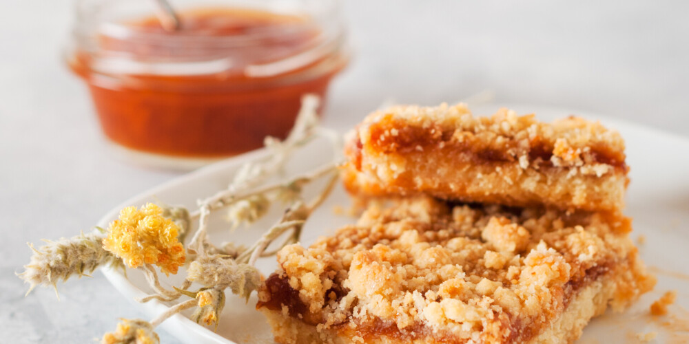 Uzkarsē cepeškrāsni uz 180 grādiem. Seklu kvadrātveida kūkas veidni, kuras diametrs ir 22 cm, izzied ar sviestu. Liec visas kūkas virskārtai paredzētās sastāvdaļas traukā un ar rokām vai blenderi sastrādā tā, lai veidojas drumstalas.