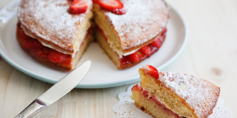 Biskvītu sagriež 2 ripās. Vienu pārsmērē ar ievārījumu un liek virsū otru, ko pārsijā ar pūdercukuru.