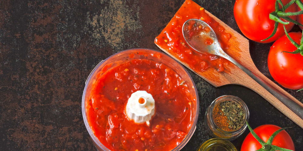 Sablenderē vai izberz caur sietu, lej atpakaļ katlā un, vāku neuzliekot, vāri tik ilgi, līdz kečups sabiezē vēlamajā konsistencē.