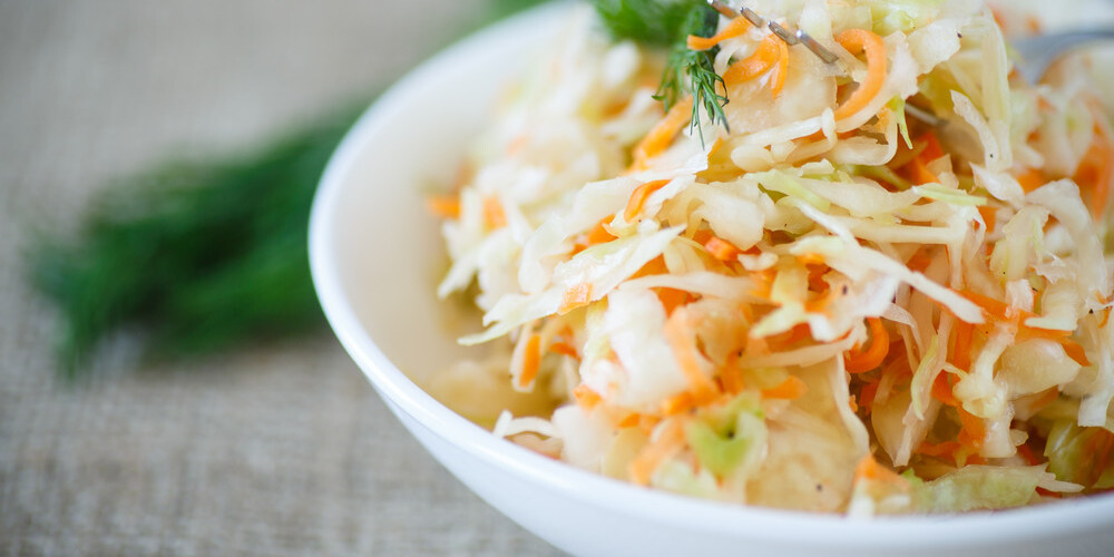 Kāpostu saēvelē vai sagriez smalkās strēmelītēs. Nomizotu burkānu sarīvē rupjās skaidiņās. Ķiplokus nomizo un pārgriez gareniski uz pusēm.