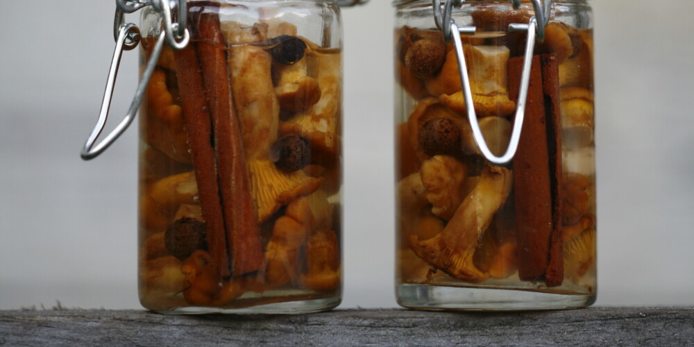 Kastrolī uzkarsē olīveļļu (neuzvāri, uzkarsē līdz 75 grādiem!), lej virsū sēnēm, lai tās būtu nosegtas. Ar koka iesmu sēnes pamaisi, lai nebūtu gaisa burbuļu, aizvāko, glabā vēsumā (tas nekas, ja eļļa sasalst!). Divas nedēļas nepieciešamas, lai garšas saēstos.