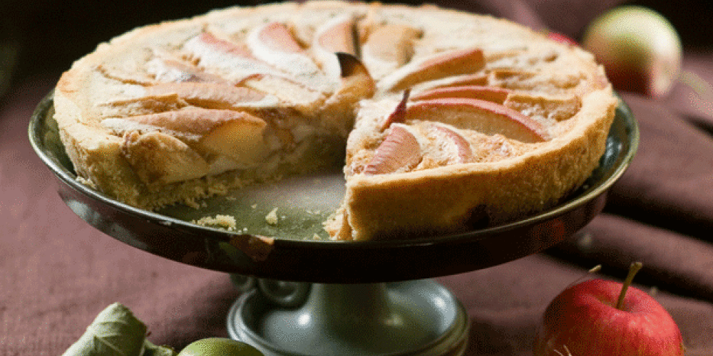 Uz kūkas pamatnes kārto ābolu šķēlītes, pārlej ar uzputoto olu masu un cep iepriekš uzkarsētā krāsnī 30-40 min 180 grādos.