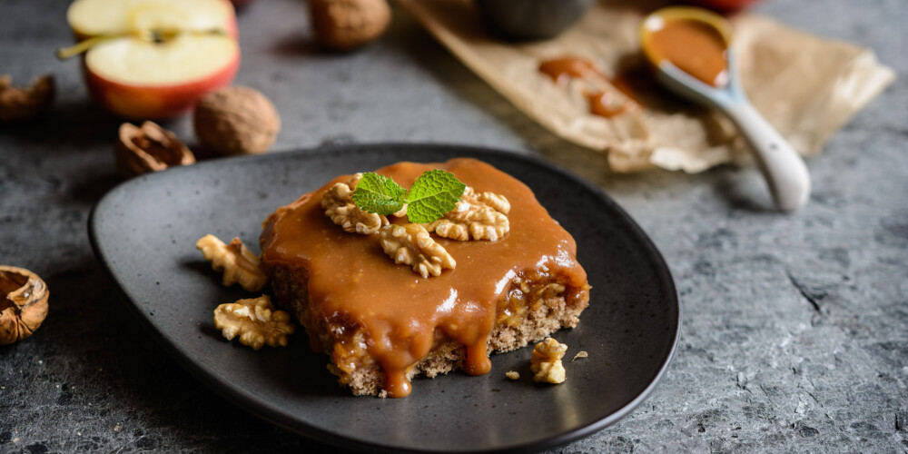 Lej mīklu uz pannas, kas izklāta ar cepamo papīru, kas ietaukots ar sviestu. Cep 180 grādos 60 minūtes.