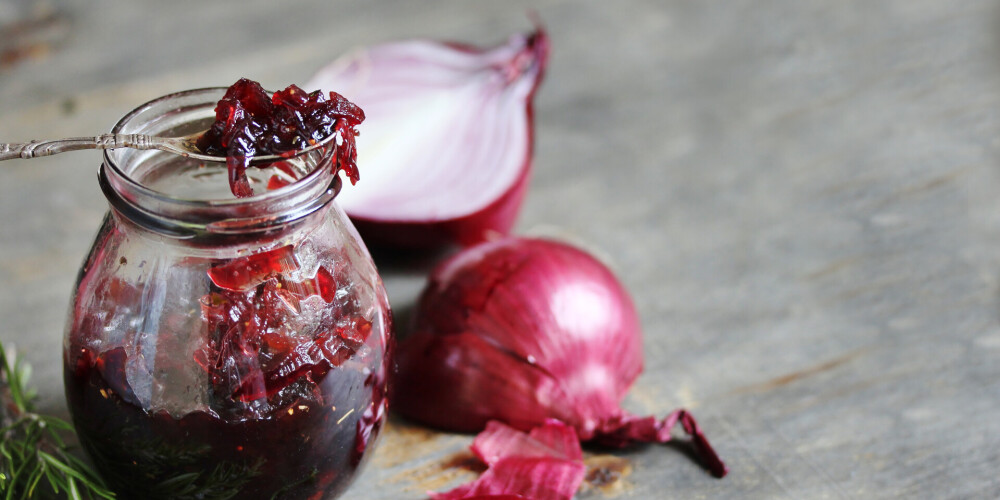 Pannā sakarsē 2 ēdk. eļļas un apcep sīpolus zeltainus. Pieber čili, pārkaisi cukuru un maisot karsē, līdz sīpoli viegli karamelizējas.