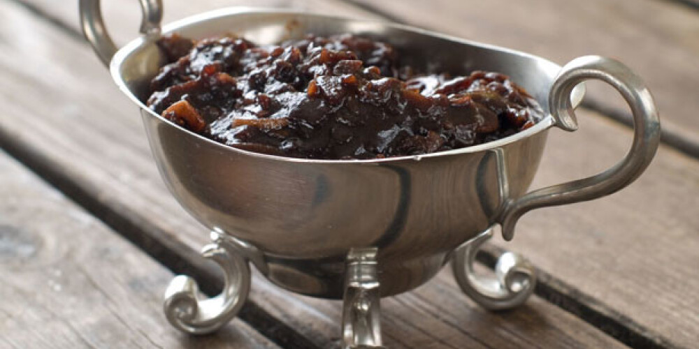 Sīpolus un ķiplokus nomizo un sagriež ripiņās. Pannā izkausē sviestu, pievieno šķipsniņu cukura un apcep sīpolus un ķiplokus līdz tie kļūst caurspīdīgi. Pievieno etiķi, mazliet ūdeni un sautē, kamēr šķidrums ir iztvaikojusi. Pēc garšas pievieno sāli.