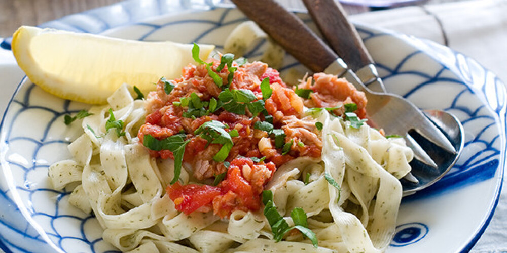 Sīpolu smalki sagriezt un apcept eļļā 5 min, līdz tie kļūst caurspīdīgi. Pievienot anšovu un cept, līdz tas izkūst. Pievienot tomātus, piparus, sāli un sautēt vēl 15 min. 5 min. pirms pagatavošanas beigām pievienot tunci. Pašās beigās pārkaisīt ar pētersīļiem.