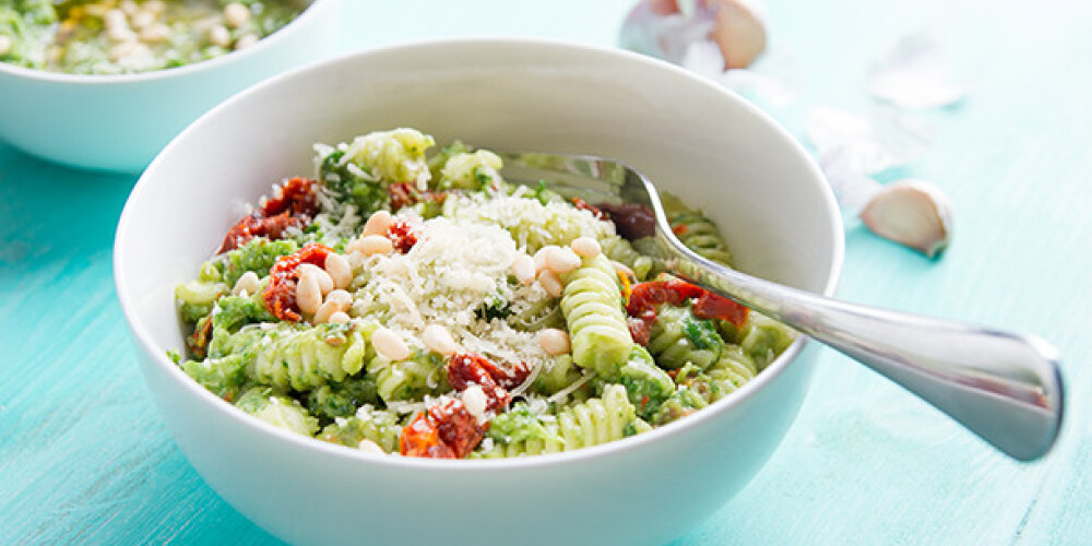 Pastu novāra sālsūdenī atbilstoši instrukcijai uz iepakojuma, ūdeni notecina. Pastai pievieno mērci, sagrieztus smalkāk kaltētus tomātus un apmaisa.