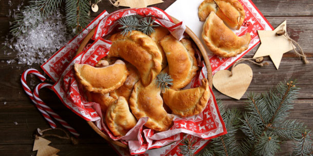 Pīrādziņus apsmērē ar sakultu olu un cep 190 grādos 15-20 min.