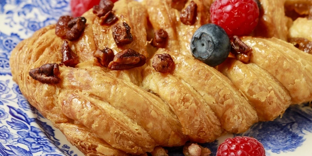 Uz galda liec atkausētas kārtainās mīklas plāksnes un ar nazi iegriez horizontālas līnijas garākajās mīklas malās, atstājot vidu neiegrieztu, lai ir, kur likt pildījumu.