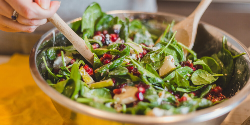 Dārzeņus pārliek salātu bļodā un rotājumam pārkaisa ar svaigu koriandru.