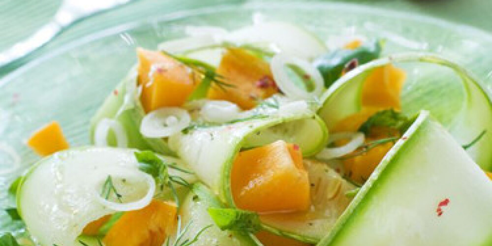 Kabaci nomazgā un ar dārzeņu mizojamo sagriež sloksnītēs, pārlej ar olīveļļu un citrona sulu un ļauj ievilkties. Aprikozes atbrīvo no kauliņiem un sagriež gabaliņos. Sīpolus sagriež plānās ripiņās. Tad kārto aprikozes, sīpolus un kabačus uz šķīvja, pārkaisa ar sāli, pipariem un zaļumiem.