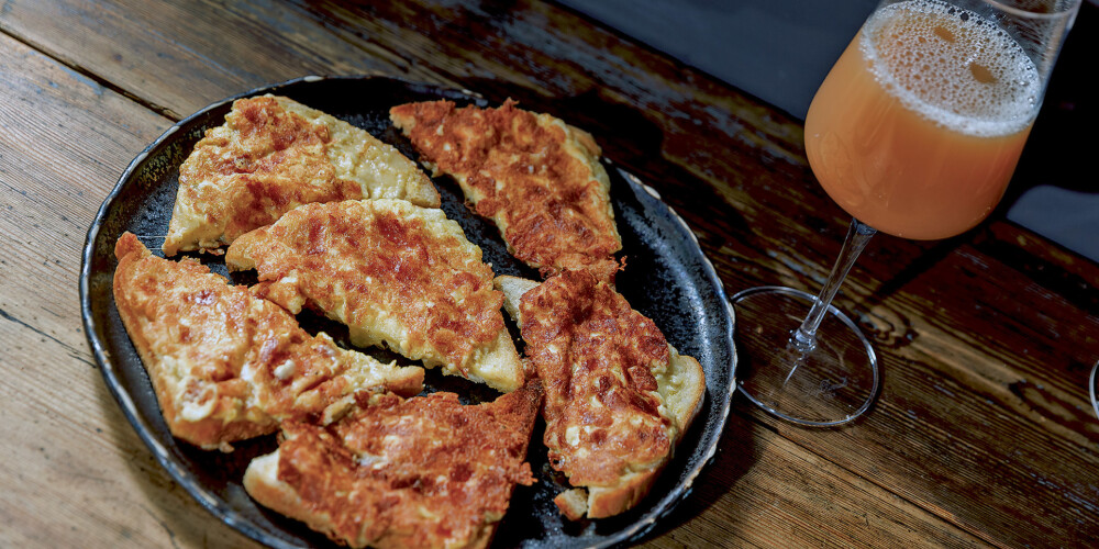 Kad siers ir izkusis, apgriež otrādi un vēl nedaudz pacep. Maizītes virsma jāapcep tā, lai tā būtu nedaudz brūna. Galvenais – otru pusi nepiededzināt.