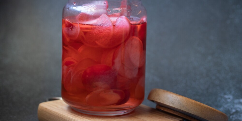 Redīsus aplej ar verdošu ūdeni un uzreiz arī nolej. Atstāj, lai atdziest.