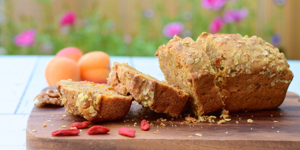 Bļodā sajauc miltus, auzu pārslas, sodu, sāli. Pievieno valriekstus un aprikozes un visu samaisi.